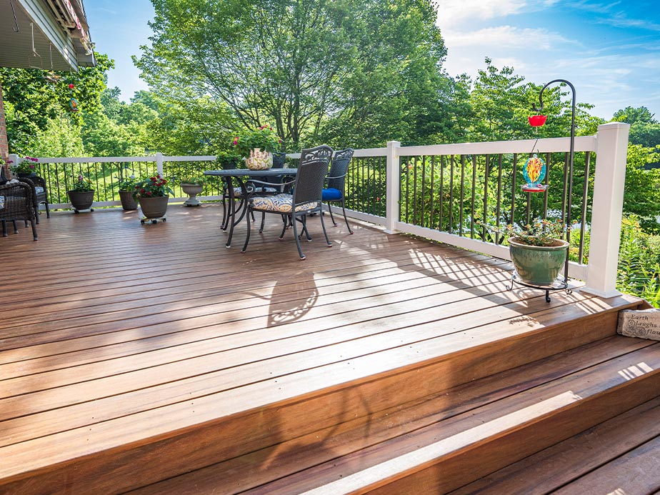 Composite decking is low-maintenance, resistant to rot and insects, and available in a range of colors and styles. It also doesn't require staining or sealing, making it an attractive option for long-term durability.